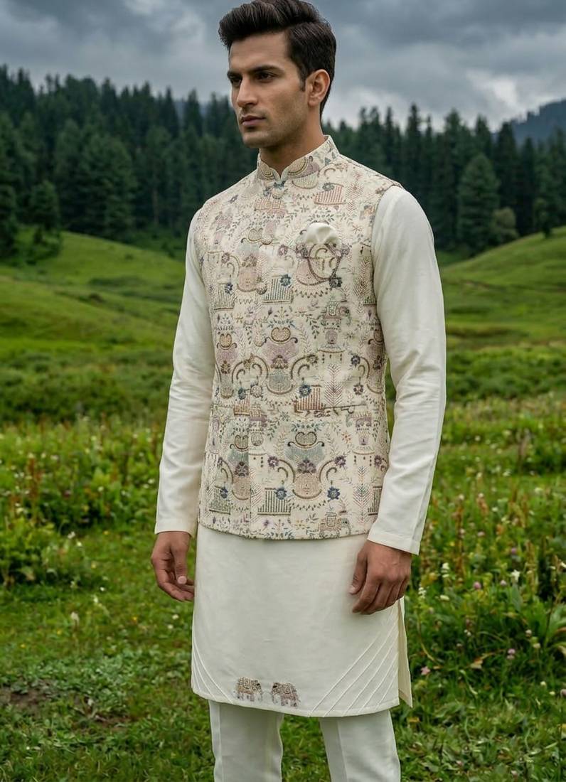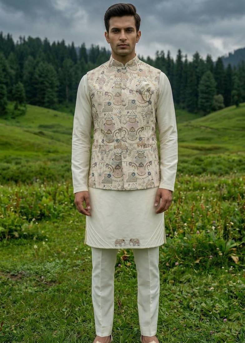 | Product Name | Cream Silk Kurta Jacket Set With Embroidery | |