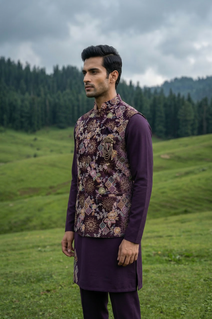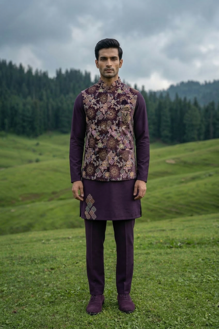 | Product Name | Purple Silk Kurta Jacket Set With Embroidery | |