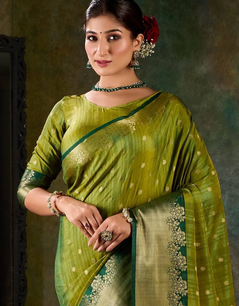 | Product Name | Olive Green Banarasi Silk Saree With Emerald Zari Border | |