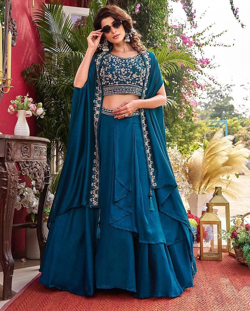 | Product Description | Vichitra Silk Heavy Embroidery Moti Bids & Sequence Work Traditional Indian Outfit Consisting Of Three Main Pieces: Lehenga (Skirt), Choli (Blouse), And Dupatta (Scarf). Originates From The Indian Subcontinent, Commonly Worn During Weddings, Festivals, And Special Occasions |