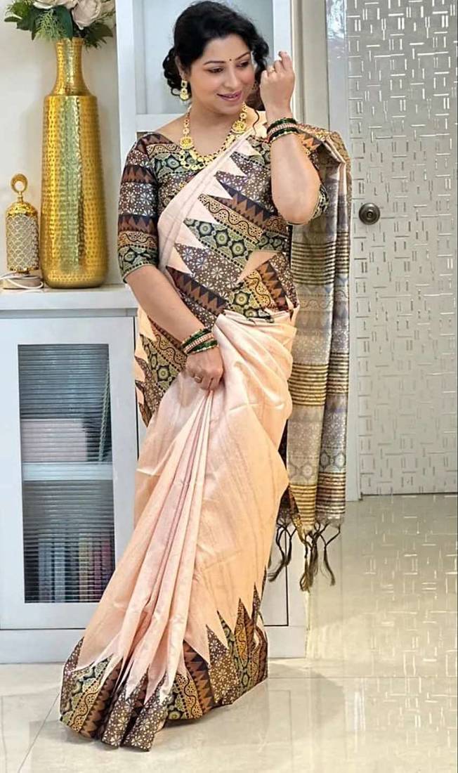 | Product Name | Soft Tussar Silk Sarees With Beautiful Digital Print Attractive Checks Design Saree With Tassels | |