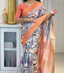 | • | Saree | : | Color- Grey / Fabric- Pure Silk Blend |