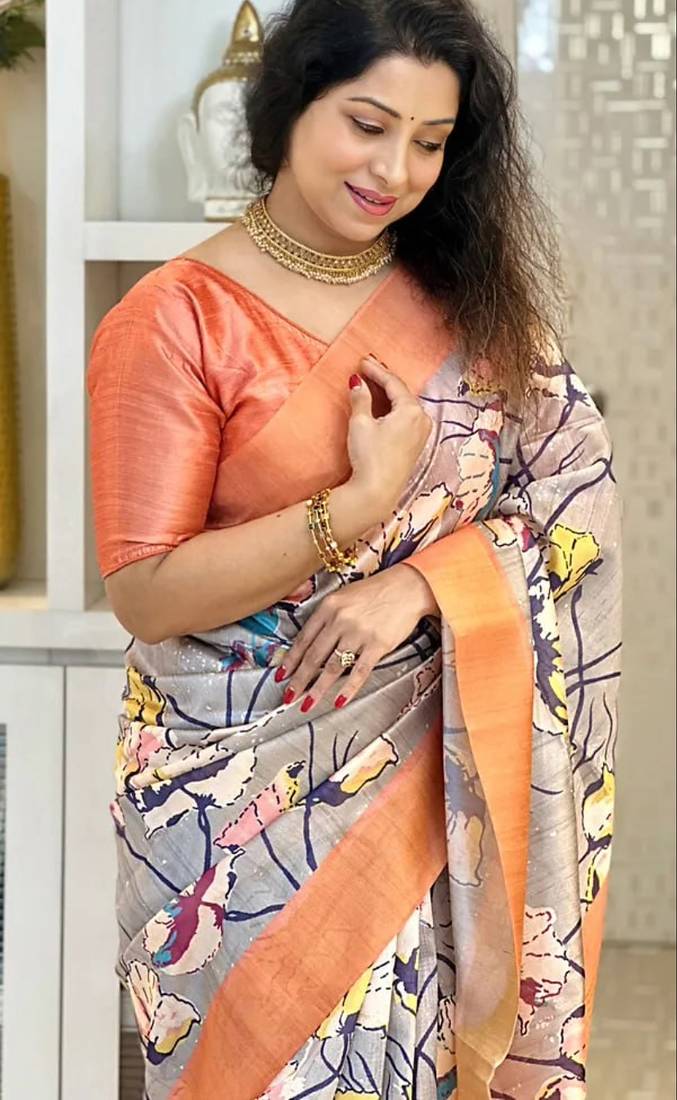 | Product Name | Soft Tussar Silk Sarees With Beautiful Digital Print Attractive Checks Design Saree With Tassels | |