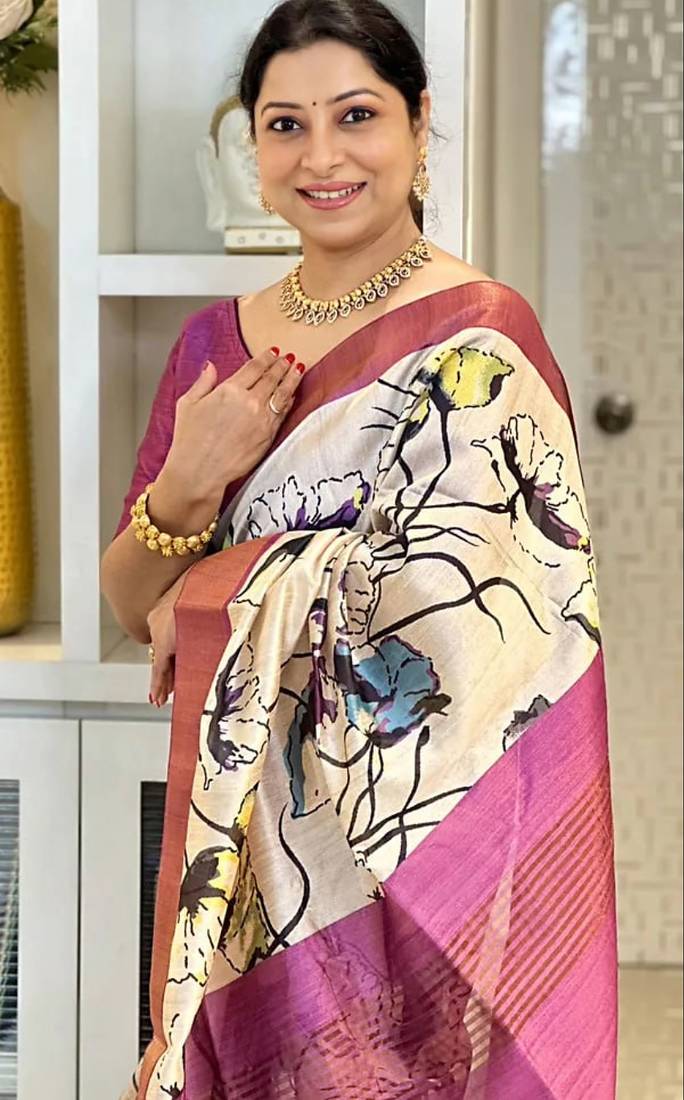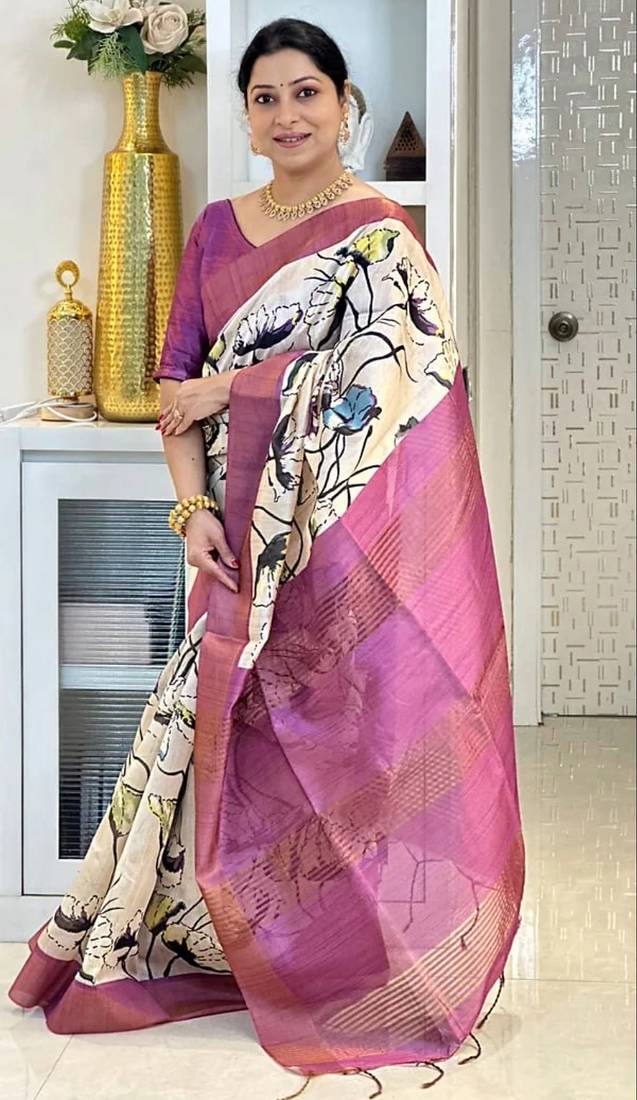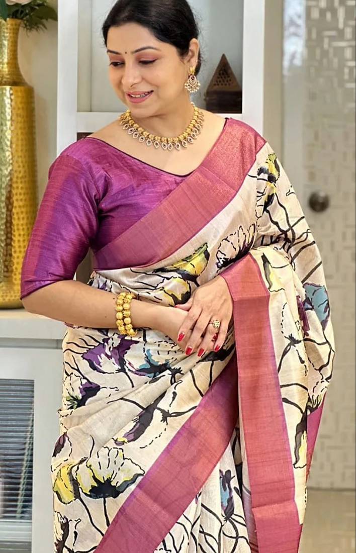 | Product Name | Soft Tussar Silk Sarees With Beautiful Digital Print Attractive Checks Design Saree With Tassels | |