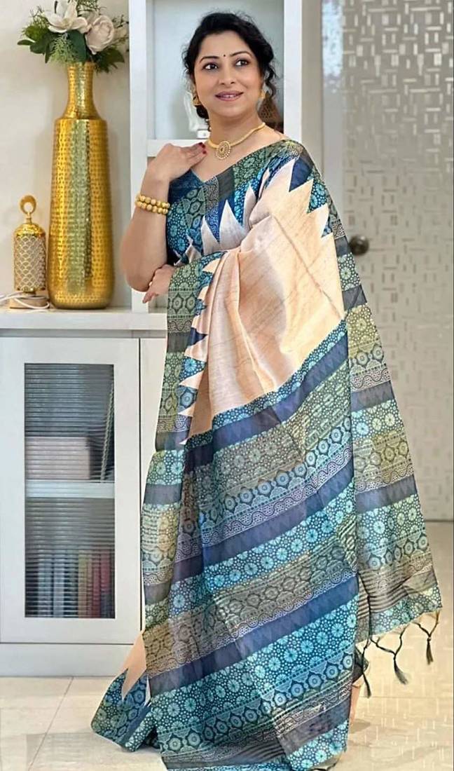| Product Name | Soft Tussar Silk Sarees With Beautiful Digital Print Attractive Checks Design Saree With Tassels | |