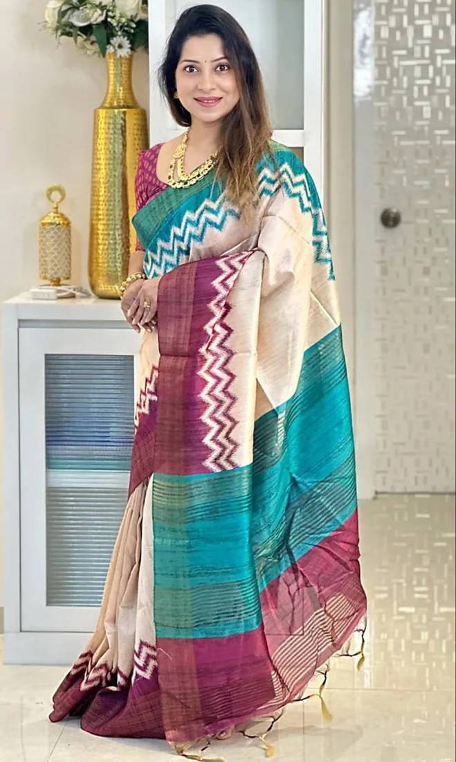 | Product Name | Soft Tussar Silk Sarees With Beautiful Digital Print Attractive Checks Design Saree With Tassels | |