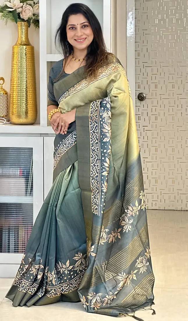 | Product Name | Soft Tussar Silk Sarees With Beautiful Digital Print With Tassels | |