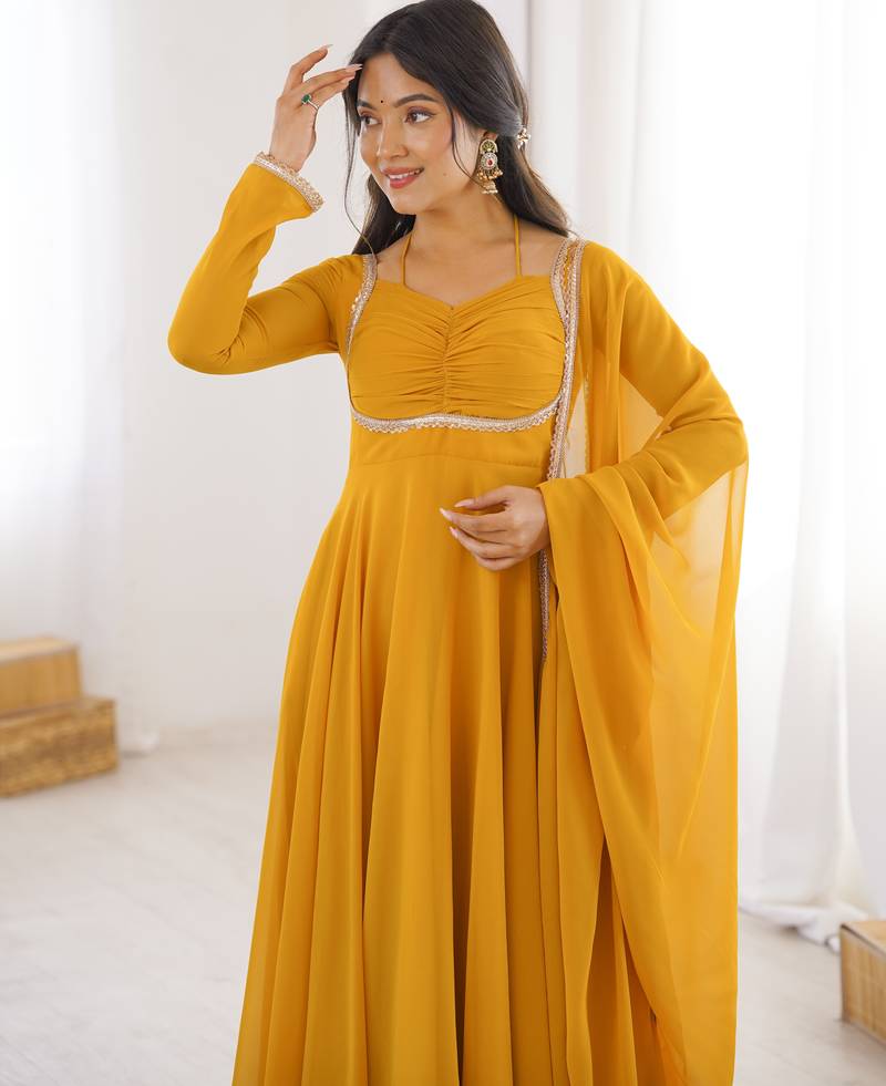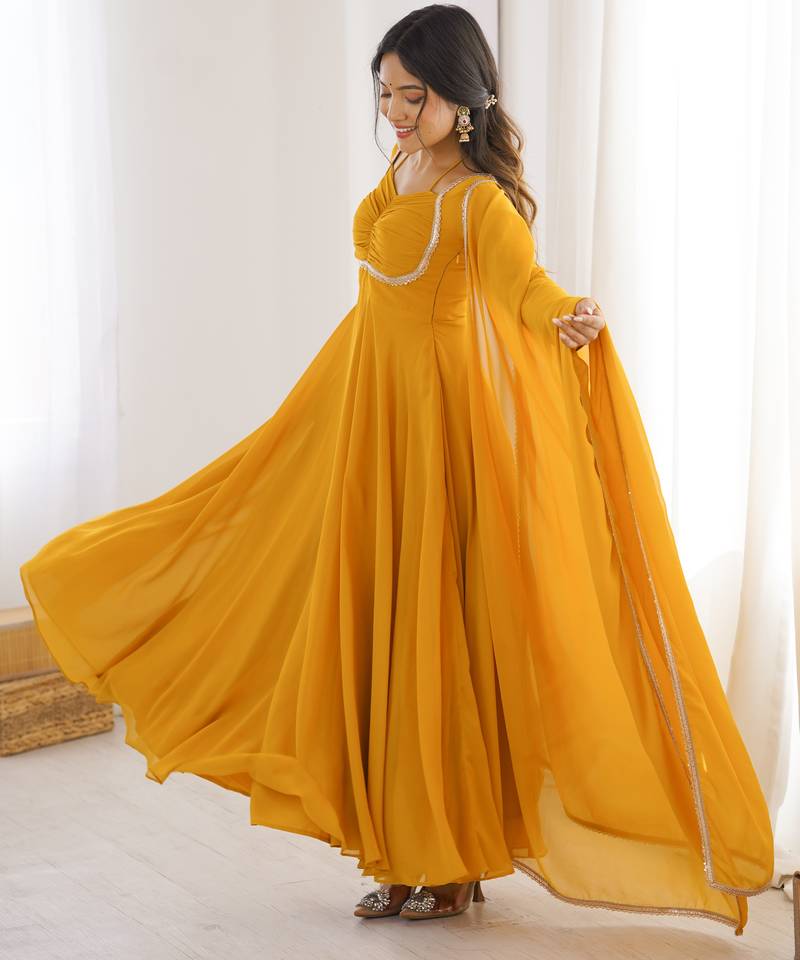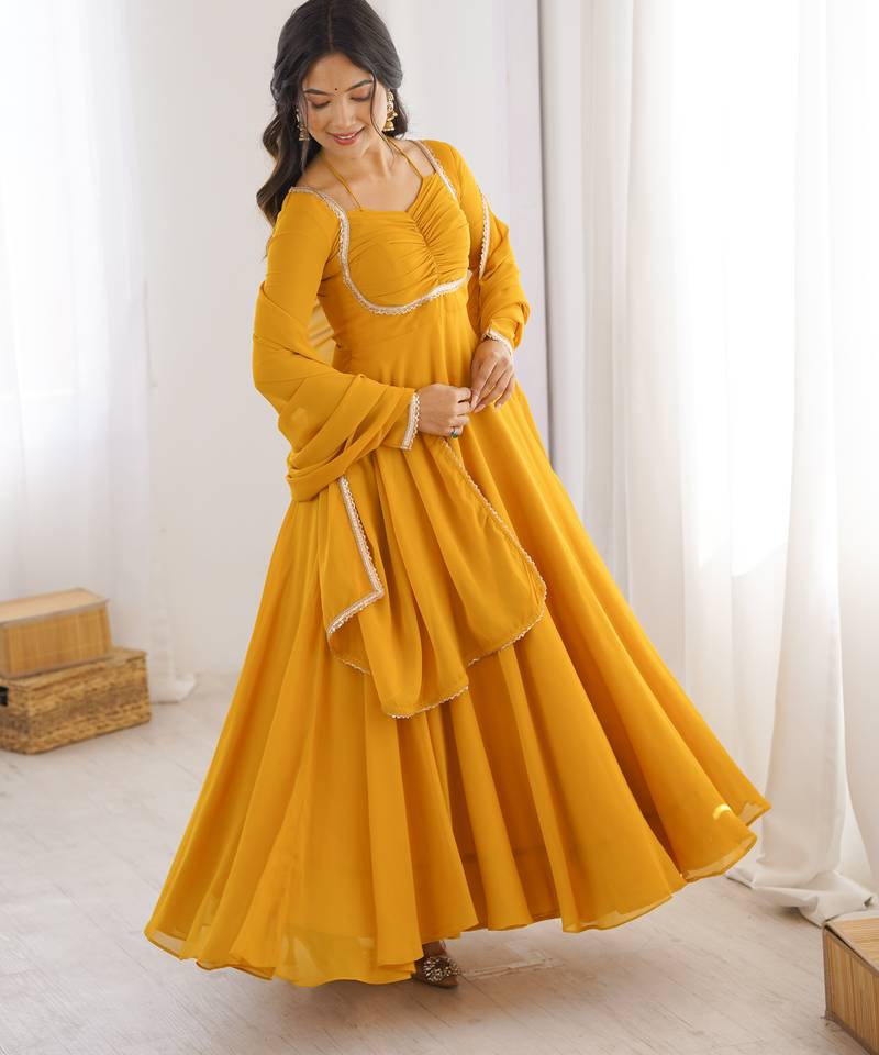| Product Name | Women Faux Georgette Lace Work Fully Flair Anrkali ,Pant With Dupatta | |