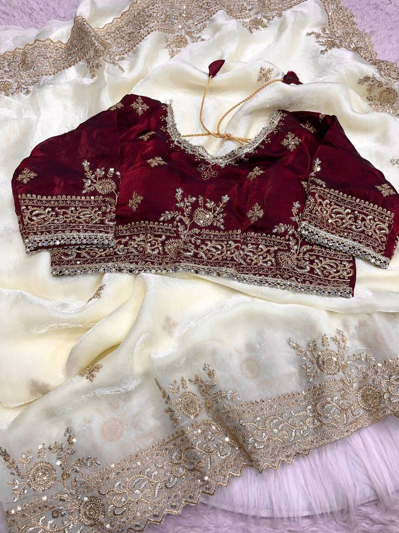 | Product Name | New Designer Embroidered Fendi Satin White Color Women's Saree With Blouse Set | |