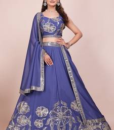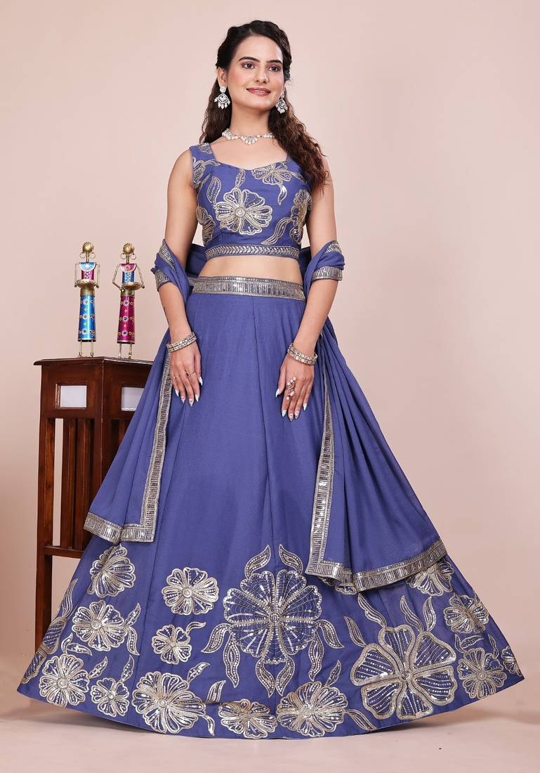 Eilara women's steel blue sequined lehenga choli with dupatta