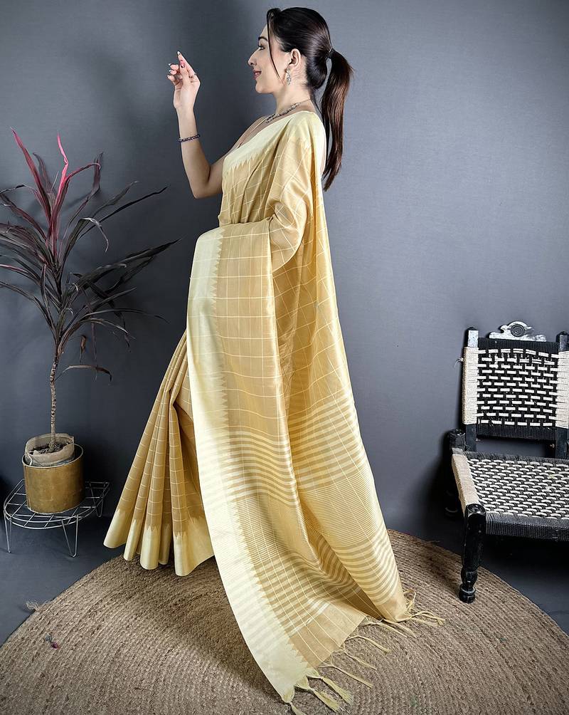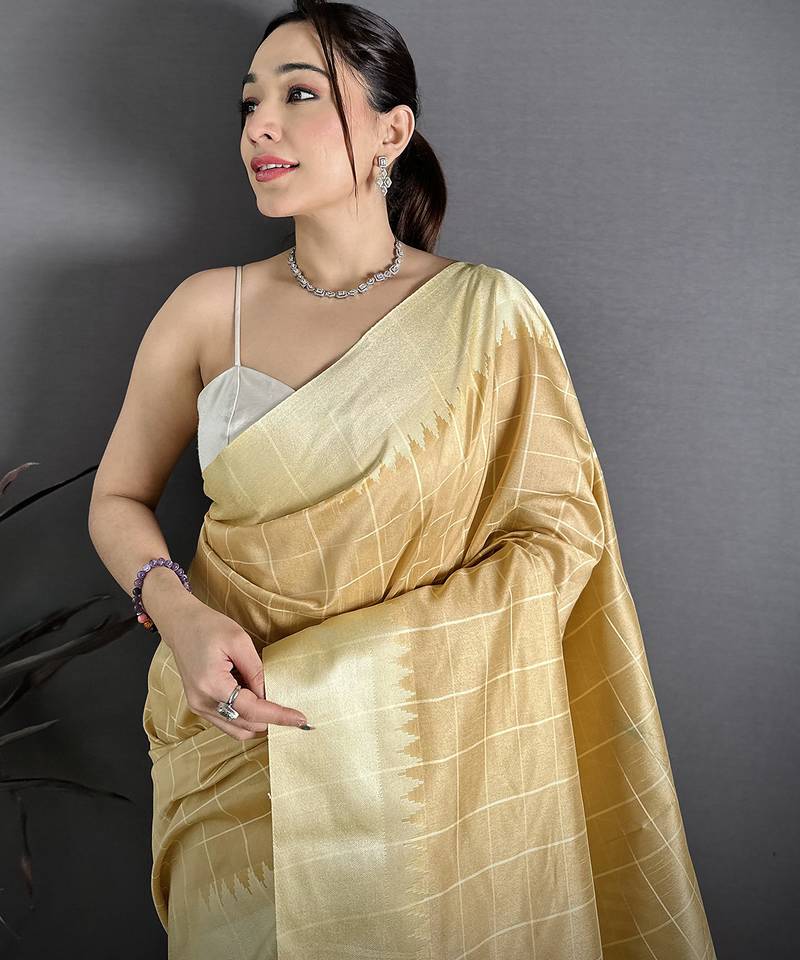 | Product Name | Beige Raw Silk Saree With Khadi Weaving Pallu & Zari Weaving Border | |