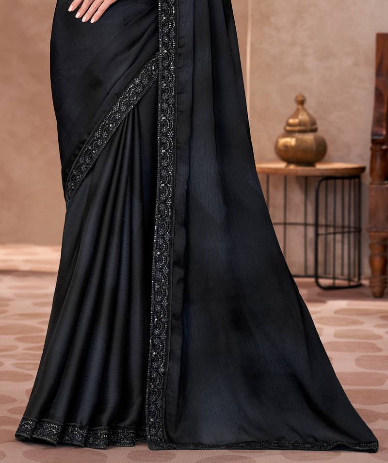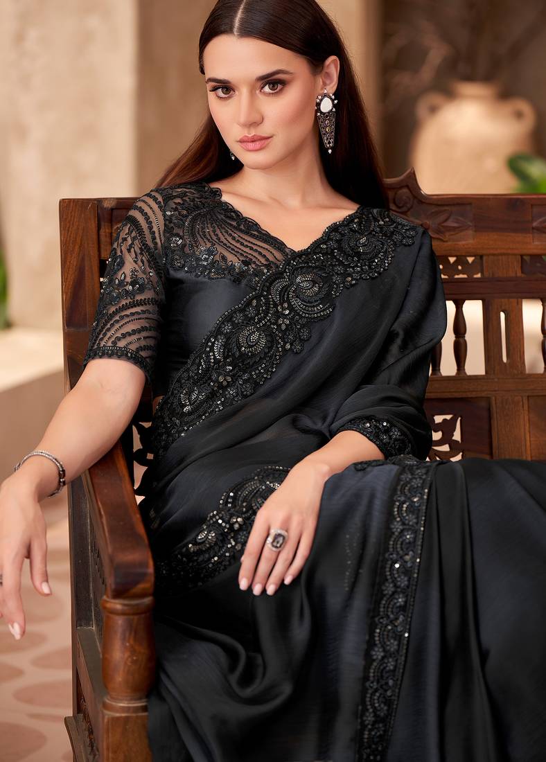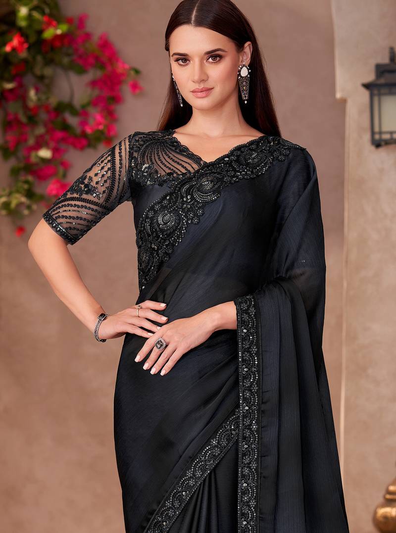 Black sparkle shaded chiffon heavy embroidery and sequin work partywear saree