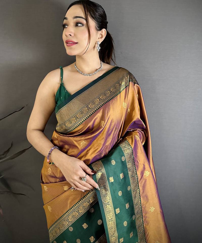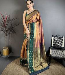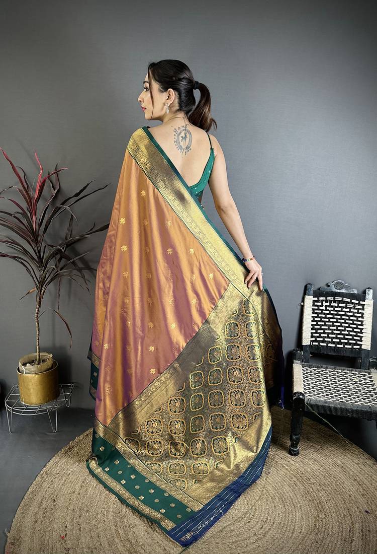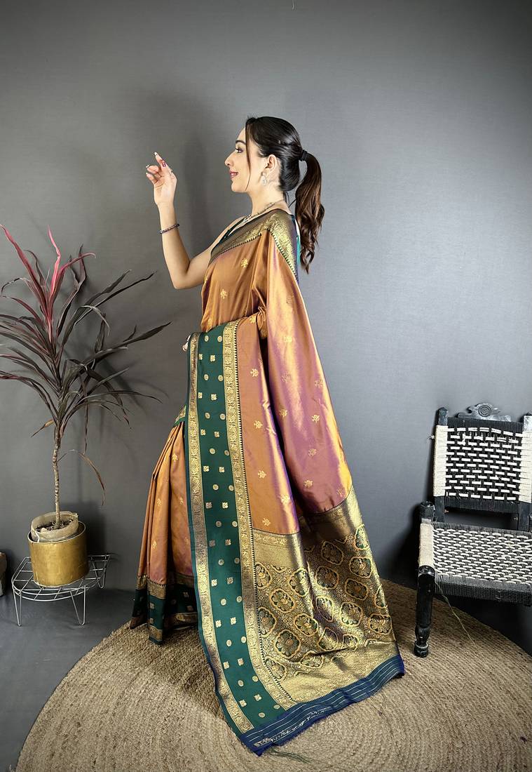 | Product Name | Copper Soft Silk Small Floral Zari Butti Gold Zari Weaving Banarasi Saree | |
