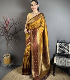 Golden bronze soft silk small floral zari butti gold zari weaving banarasi saree