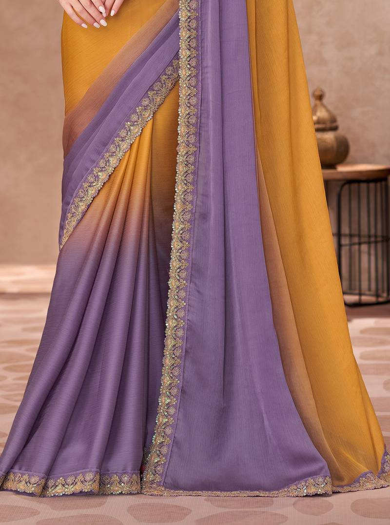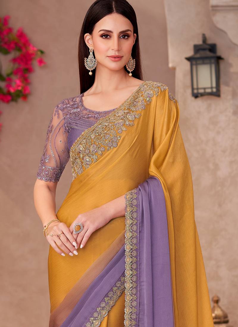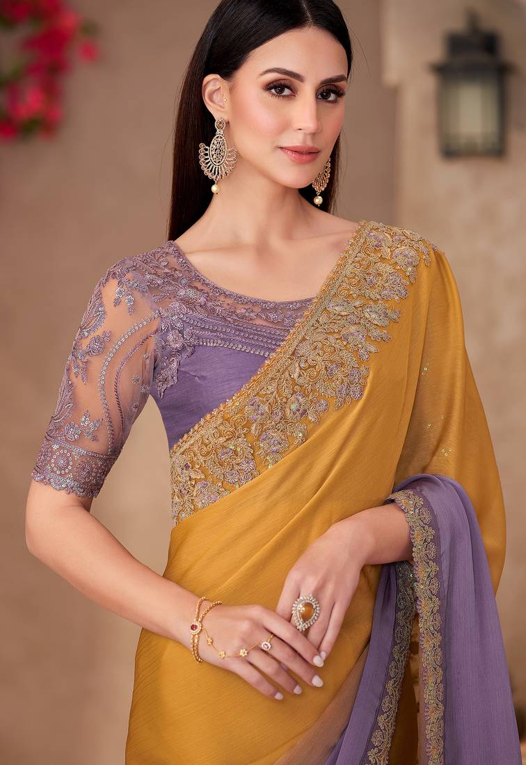 | Product Name | Mustard Yellow Majestic Shaded Chiffon Heavy Embroidery And Sequin Work Partywear Saree | |