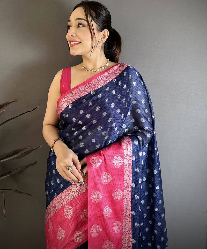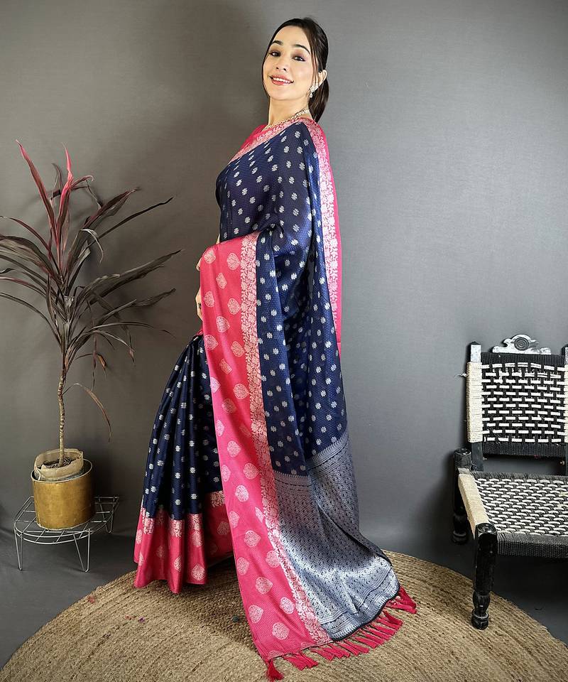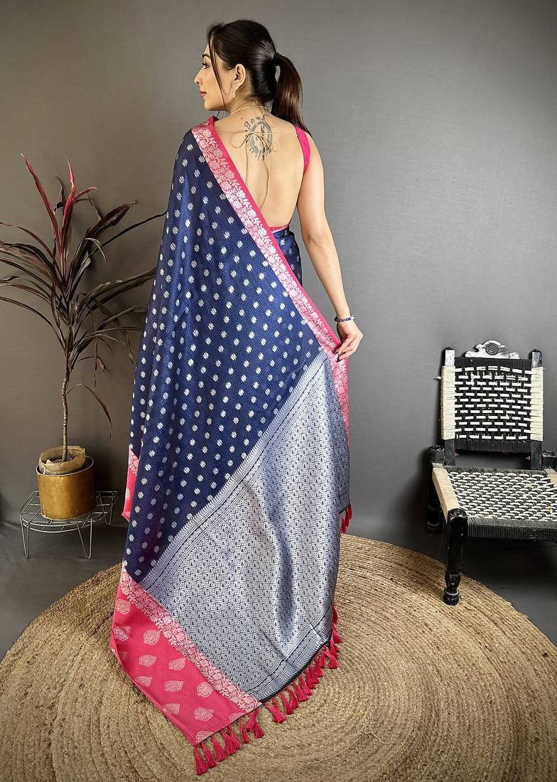 | Product Name | Navy Blue Soft Silk Silver Zari Butti Banarasi Saree | |