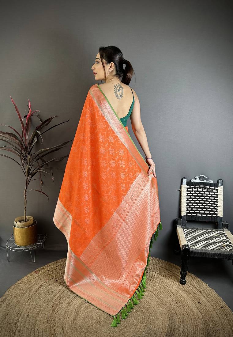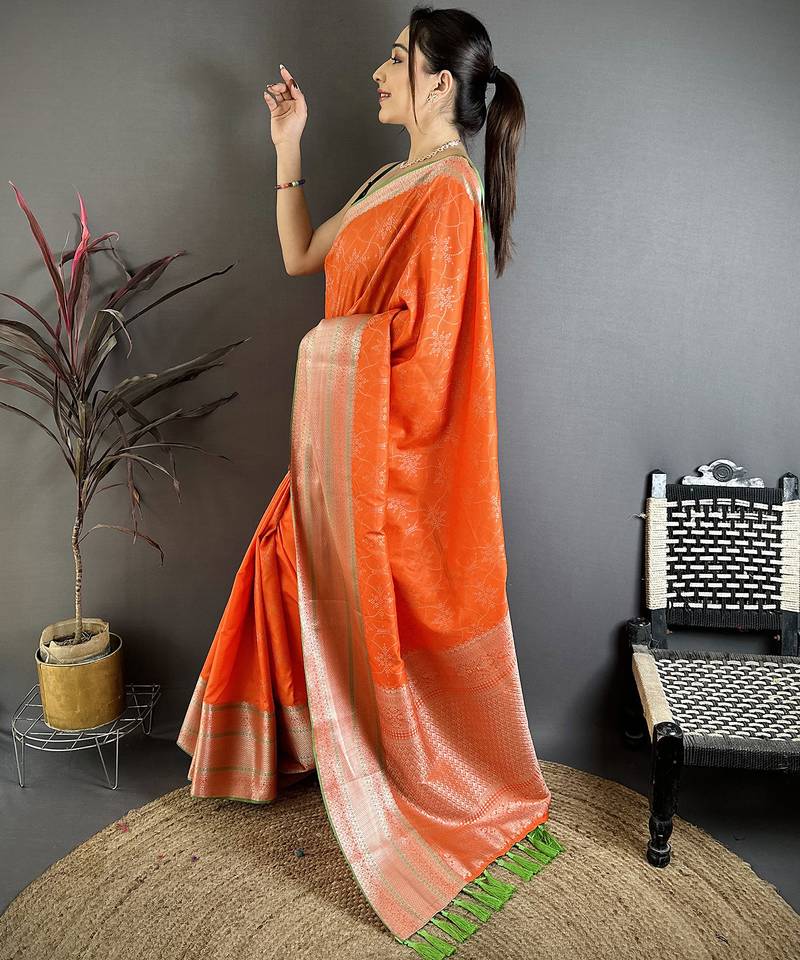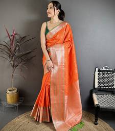 | Product Name | Orange Banarasi Silk Intricate Zari Weaving Kanjivaram Sarees | |