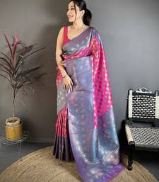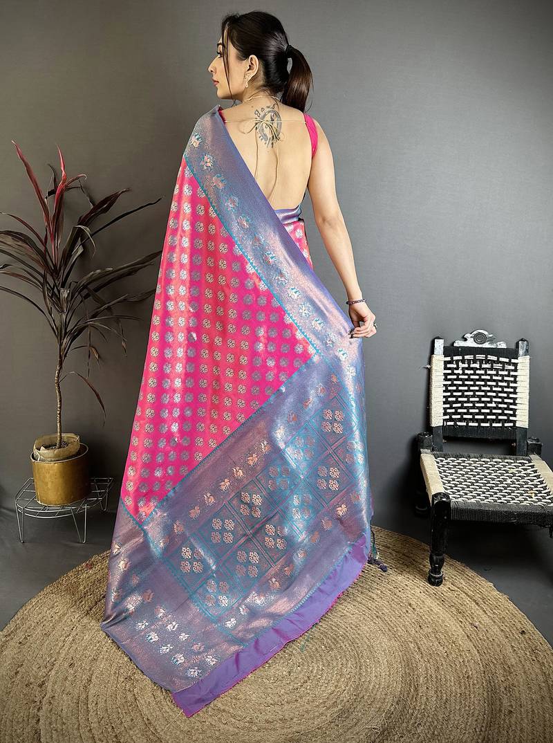 | Product Name | Pink Tissue Silk Floral Pattern With Copper Motifs Banarasi Saree | |