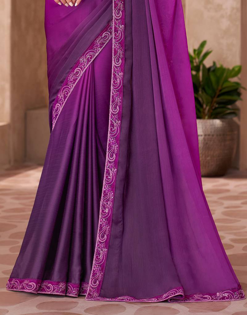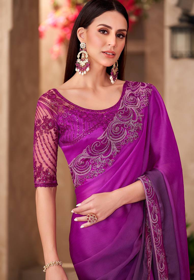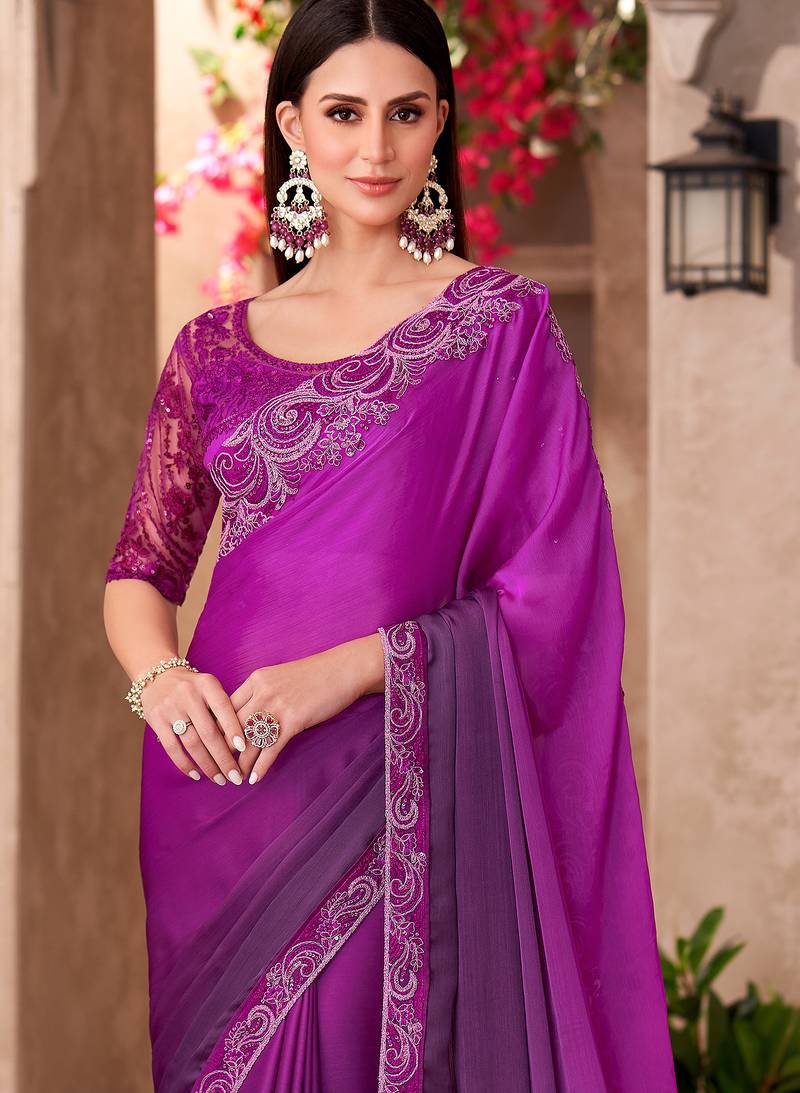 Purple majestic shaded chiffon heavy embroidery and sequin work partywear saree