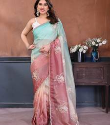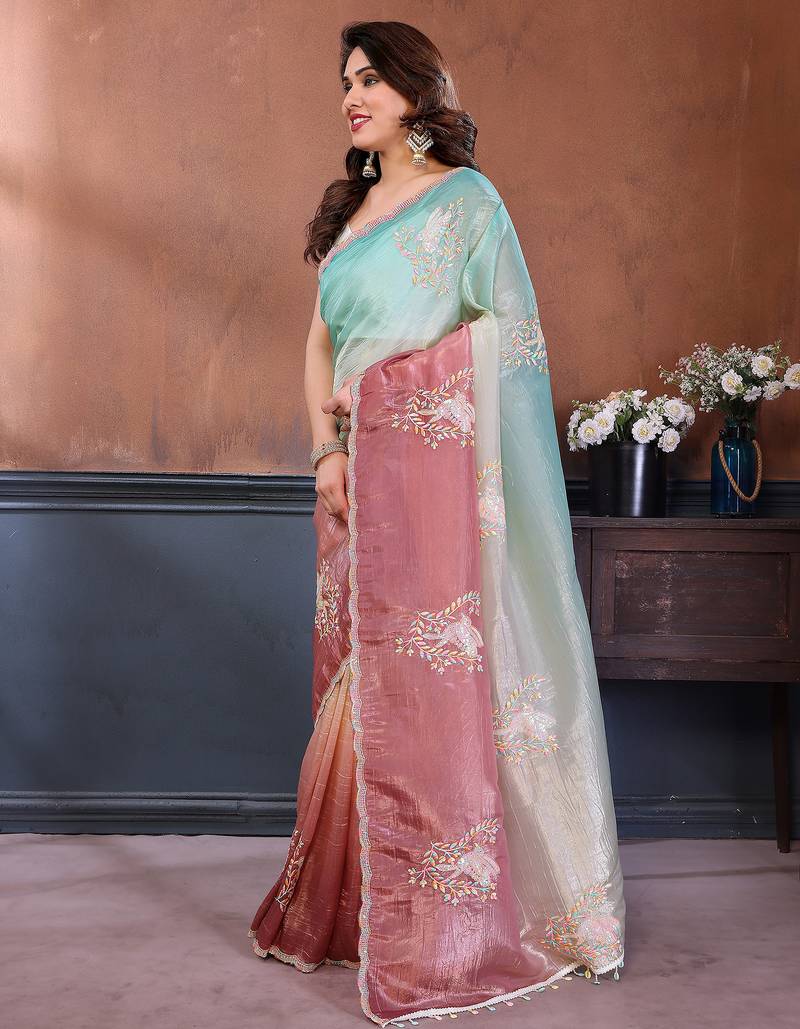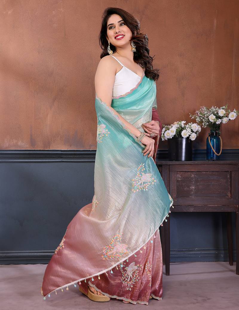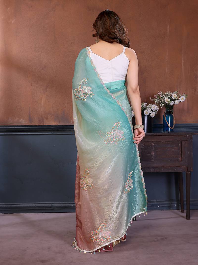 Rama & bit gold crush multicolored floral motifs embroidery saree