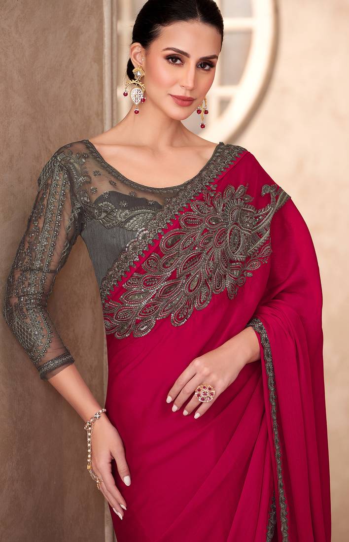 | Product Description | Make A Bold Statement In This Red Chiffon Silk Partywear Saree Crafted For Grand Celebrations. The Soft Chiffon Silk Drapes Smoothly, While Heavy Embroidery And Sequin Work Add Brilliant Shine For Weddings And Festive Nights. Designed For Modern Elegance, This Embroidered Red Saree Blends Luxury With Comfort. Fine Thread Work And Sparkling Sequins Create A Rich Designer Look, Giving You A Graceful Silhouette At Receptions And Special Events. This Red Sequin Work Saree Pairs Beautifully With Gold Jewelry And Heels For A Complete Festive Style. The Vibrant Red Shade Enhances Every Skin Tone. Add This Heavy Embroidery Partywear Saree To Your Wardrobe Today. |