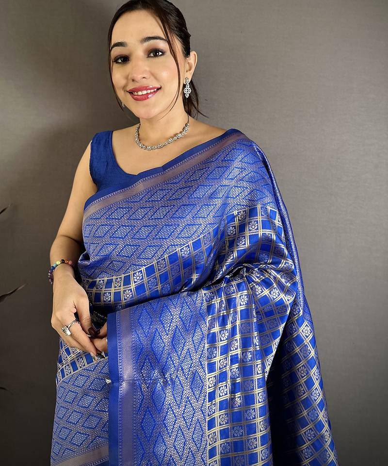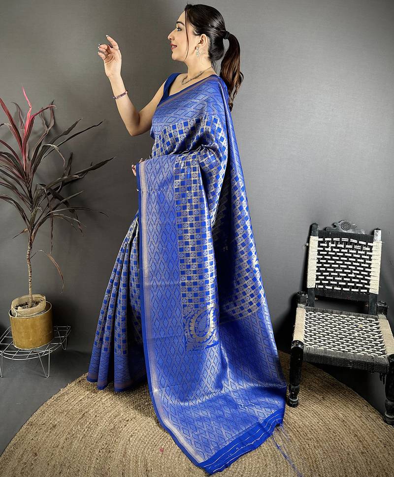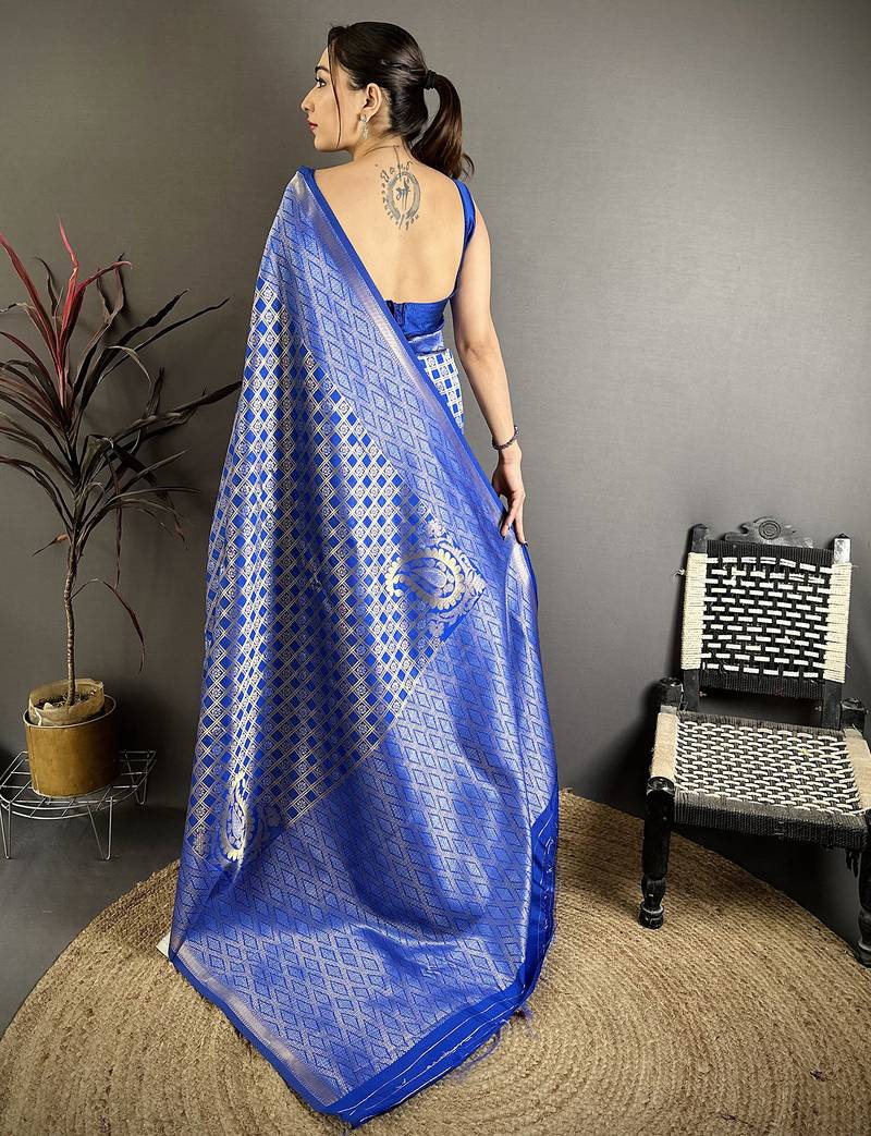 | Product Name | Royal Blue Soft Silk Geometric Woven Design Zari Weaving Banarasi Saree | |