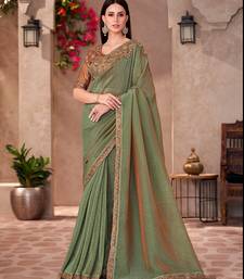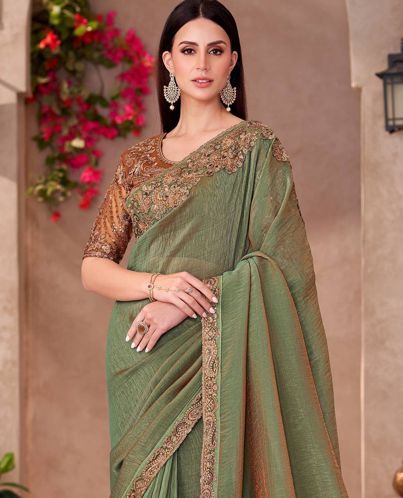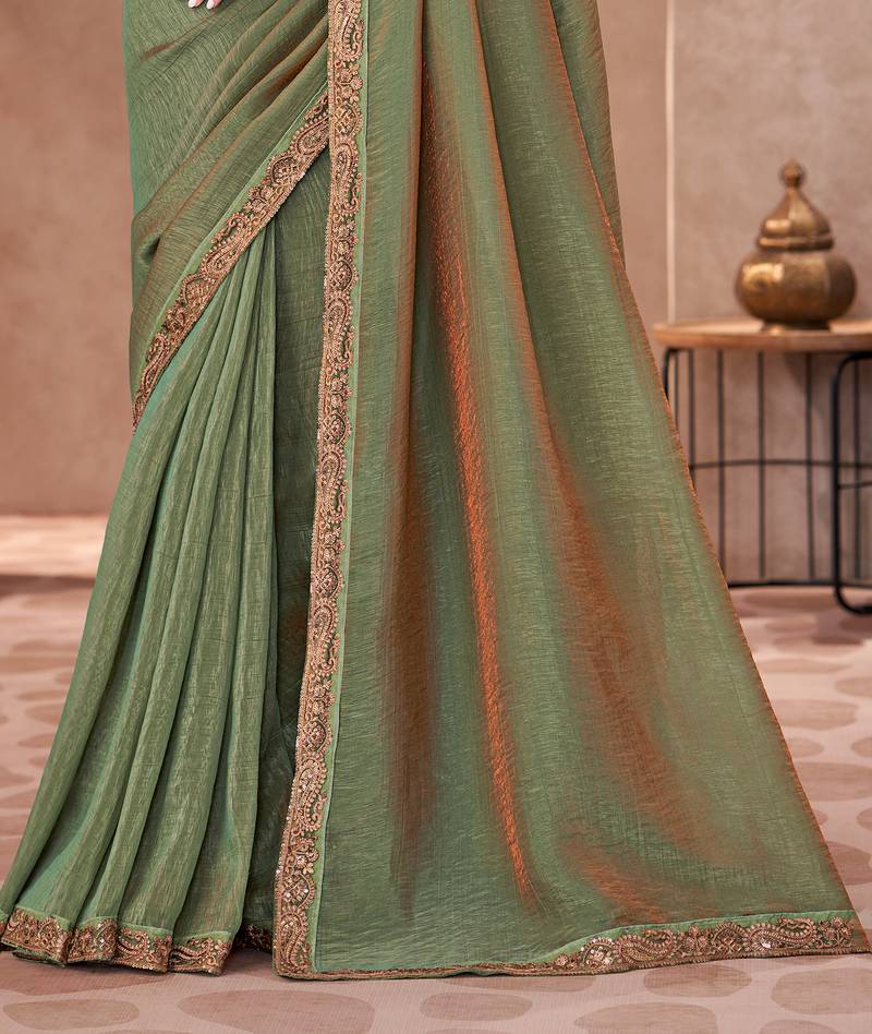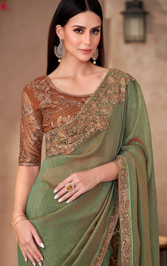 Sage green golden shine georgette heavy embroidery and sequin work partywear saree