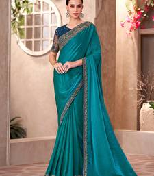 Teal blue satin georgette heavy embroidery and sequin work partywear saree