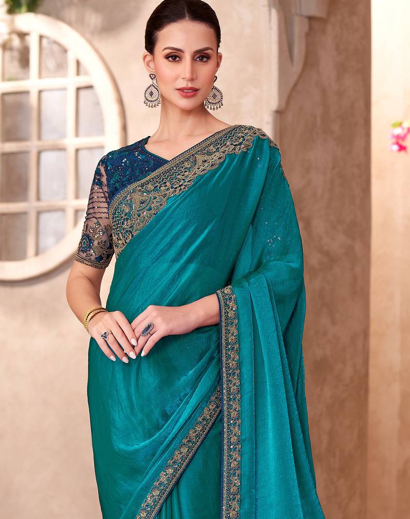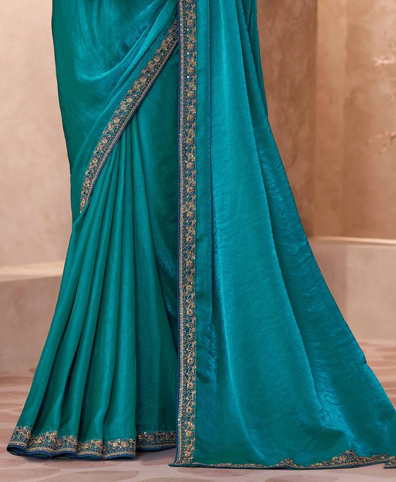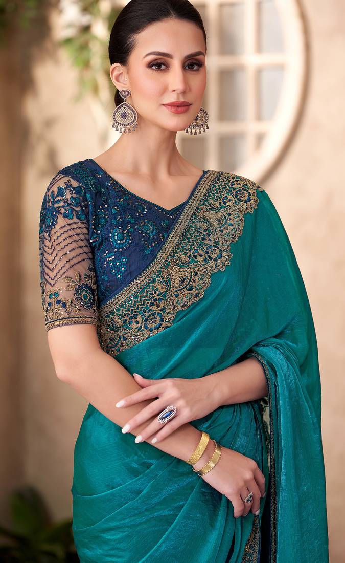 | Product Name | Teal Blue Satin Georgette Heavy Embroidery And Sequin Work Partywear Saree | |