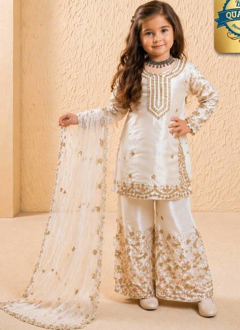 | Product Name | Designer Party Wear Heavy Silk Kids Top Sharara & Dupatta Set | |