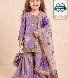 Designer party wear heavy silk kids top sharara & dupatta set