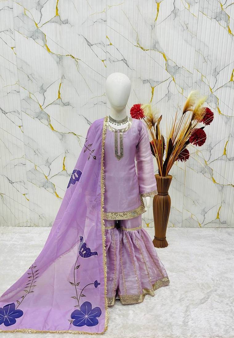 | Product Name | Designer Party Wear Heavy Silk Kids Top Sharara & Dupatta Set | |