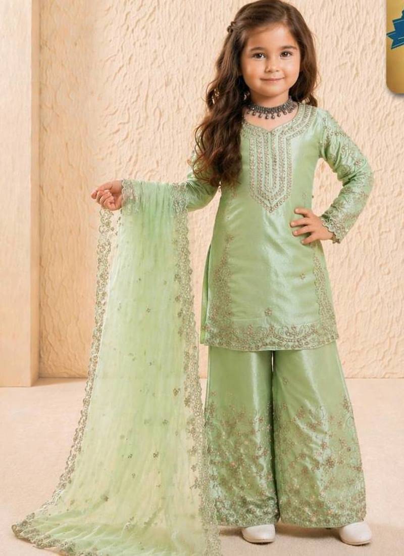 | Product Name | Designer Party Wear Heavy Silk Kids Top Sharara & Dupatta Set | |