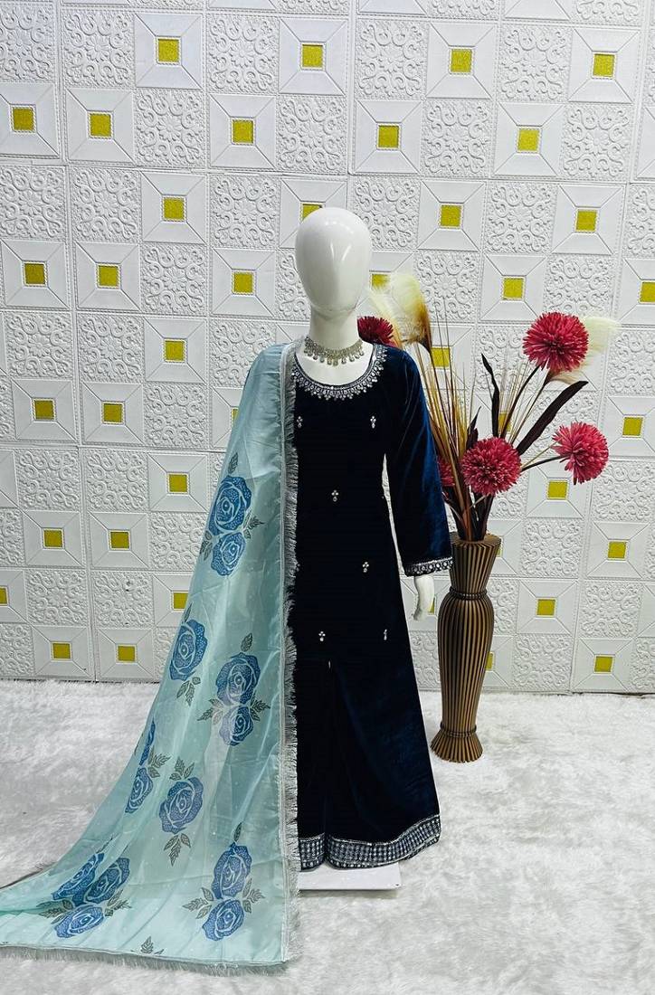 | Product Name | Designer Viscose Velvet Embroidered Work Kids Kurta Plazzo Set | |