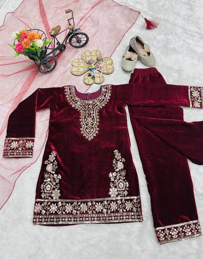 | Product Name | Designer Viscose Velvet Embroidered Work Kids Kurta Set | |
