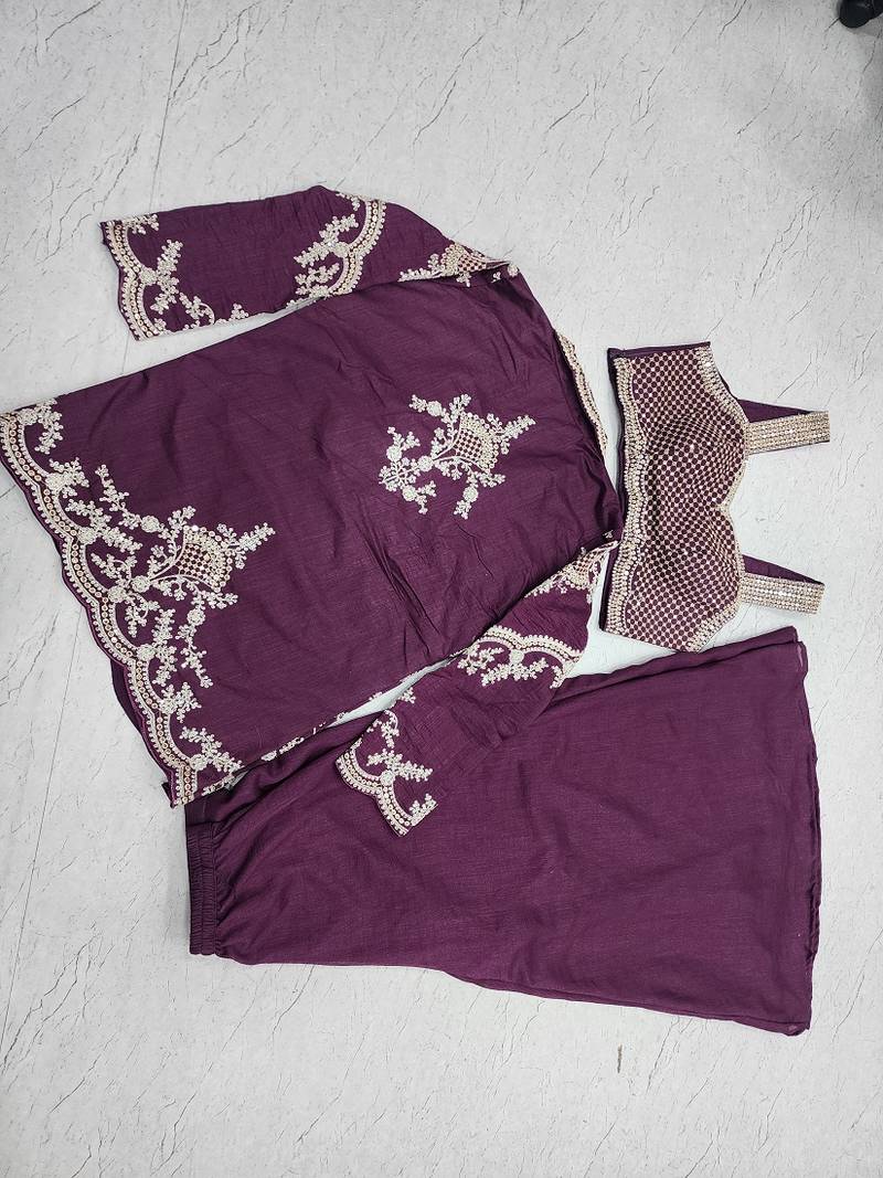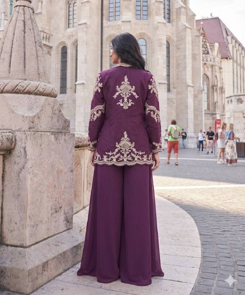 | Product Name | Elegant Wine Indo Western Palazzo Set For Wedding Wear | |
