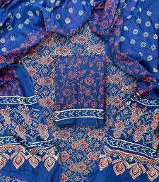 Blue hand block printed cotton suit with kota doriya dupatta unstitched