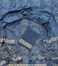 Blue hand block printed cotton suit with kota doriya dupatta unstitched