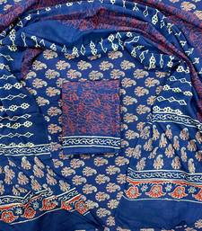 Blue hand block printed cotton suit with kota doriya dupatta unstitched