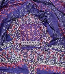 Blue hand block printed cotton suit with kota doriya dupatta unstitched