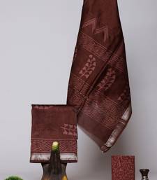 Brown exclusive new hand block printed maheshwari silk zari border suits pieces unstitched