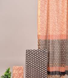 Cream hand block printed cotton suit with kota doriya dupatta unstitched