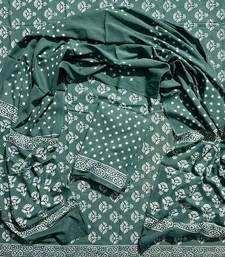 Green hand block printed cotton suit with kota doriya dupatta unstitched