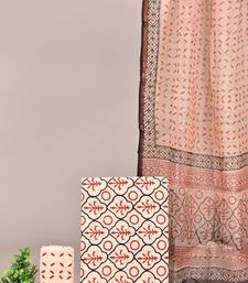 Light yellow hand block printed cotton suit with kota doriya dupatta unstitched