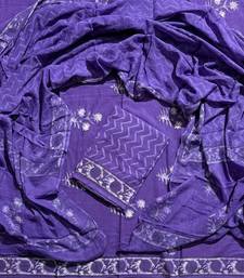 Navy blue hand block printed cotton suit with kota doriya dupatta unstitched