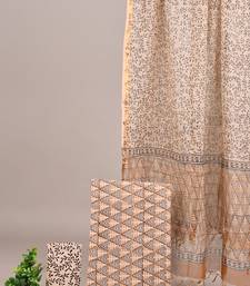 Peach hand block printed cotton suit with kota doriya dupatta unstitched
