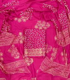 Pink hand block printed cotton suit with kota doriya dupatta unstitched