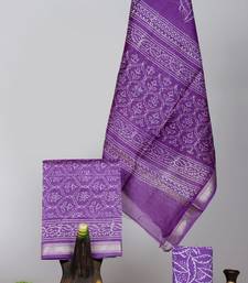 | Product Name | Purple Exclusive New Hand Block Printed Maheshwari Silk Zari Border Suits Pieces | |