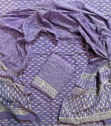 Purple hand block printed cotton suit with kota doriya dupatta unstitched