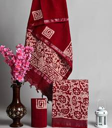 Red bagru hand block printed linen suits with zari border unstitched